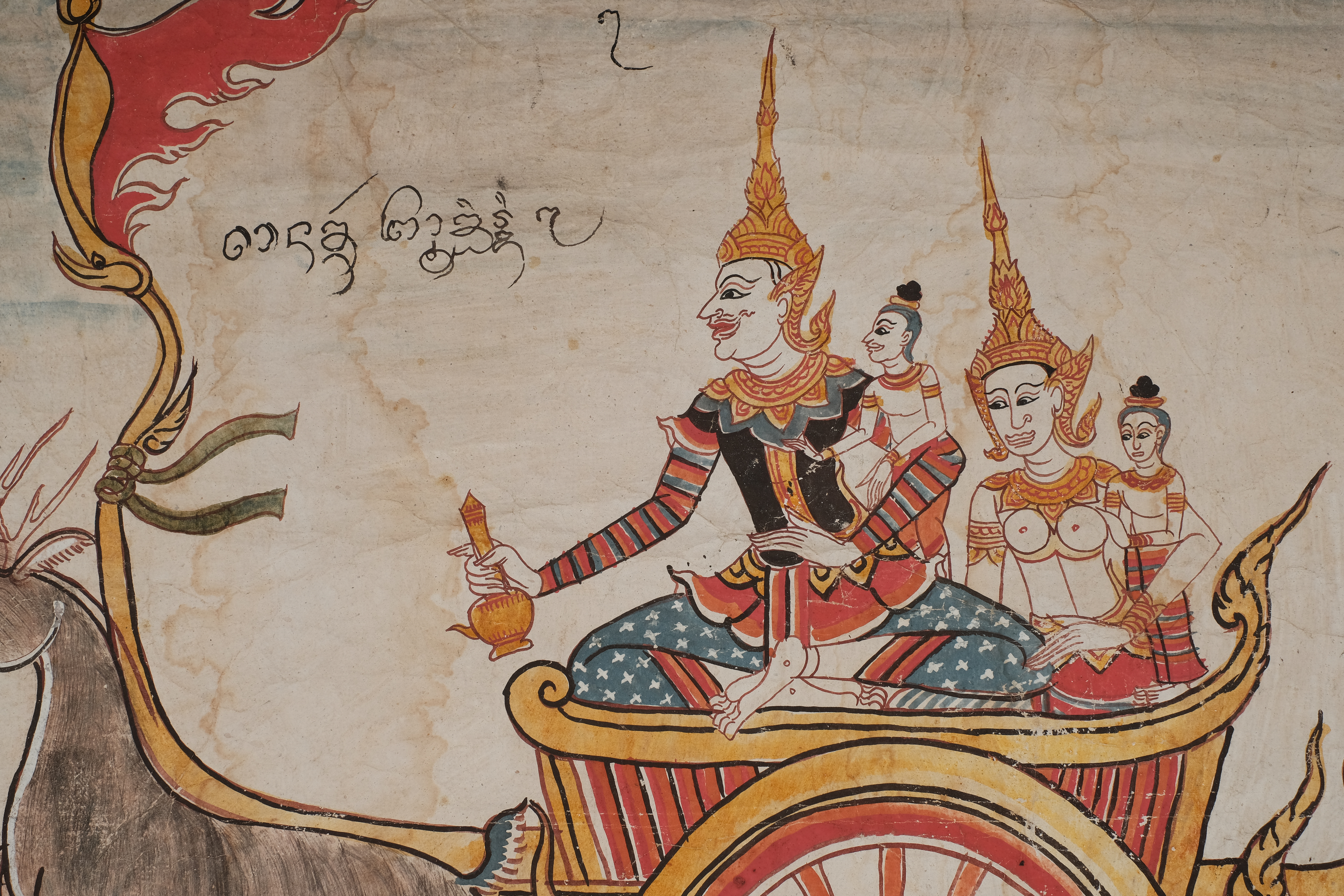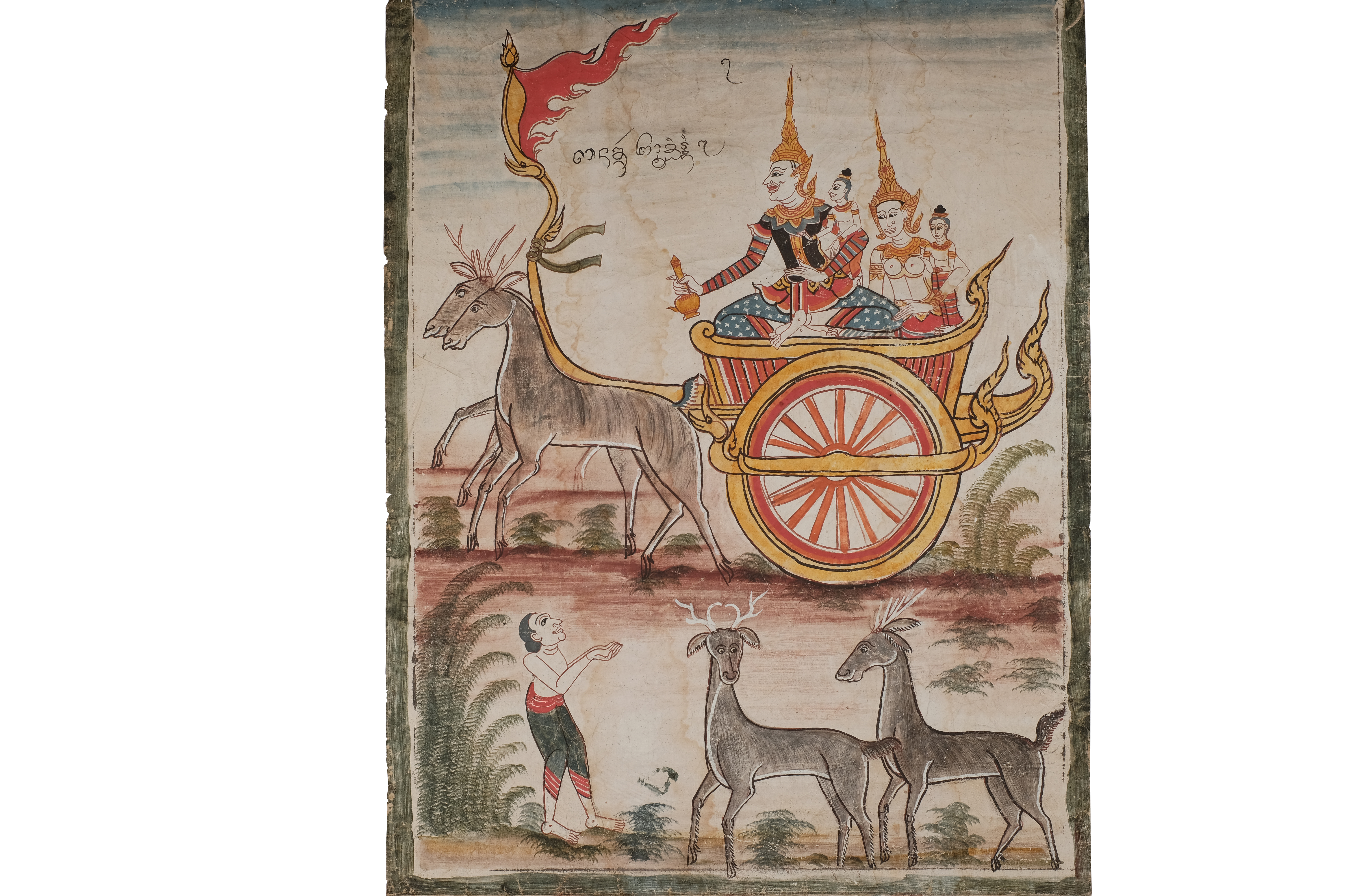 ลักษณะทางกายภาพ : ลักษณะเป็นกระดาษสี่เหลี่ยมผืนผ้า วาดด้วยสีฝุ่น ขนาดความกว้าง 66 เซนติเมตร ยาว 147 เซนติเมตร