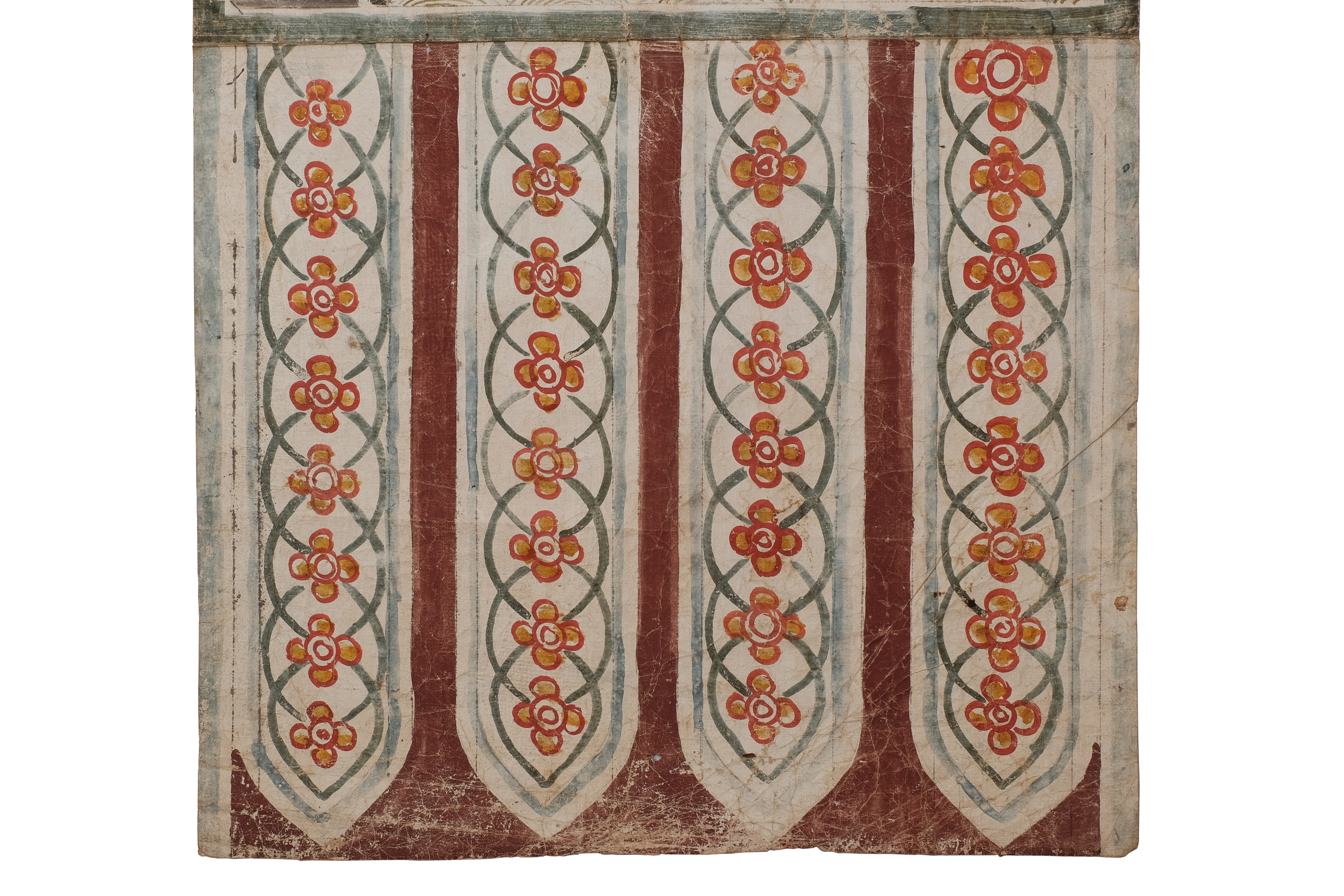 ลักษณะทางกายภาพ : ลักษณะเป็นกระดาษสี่เหลี่ยมผืนผ้า วาดด้วยสีฝุ่น ขนาดความกว้าง 66 เซนติเมตร ยาว 146 เซนติเมตร