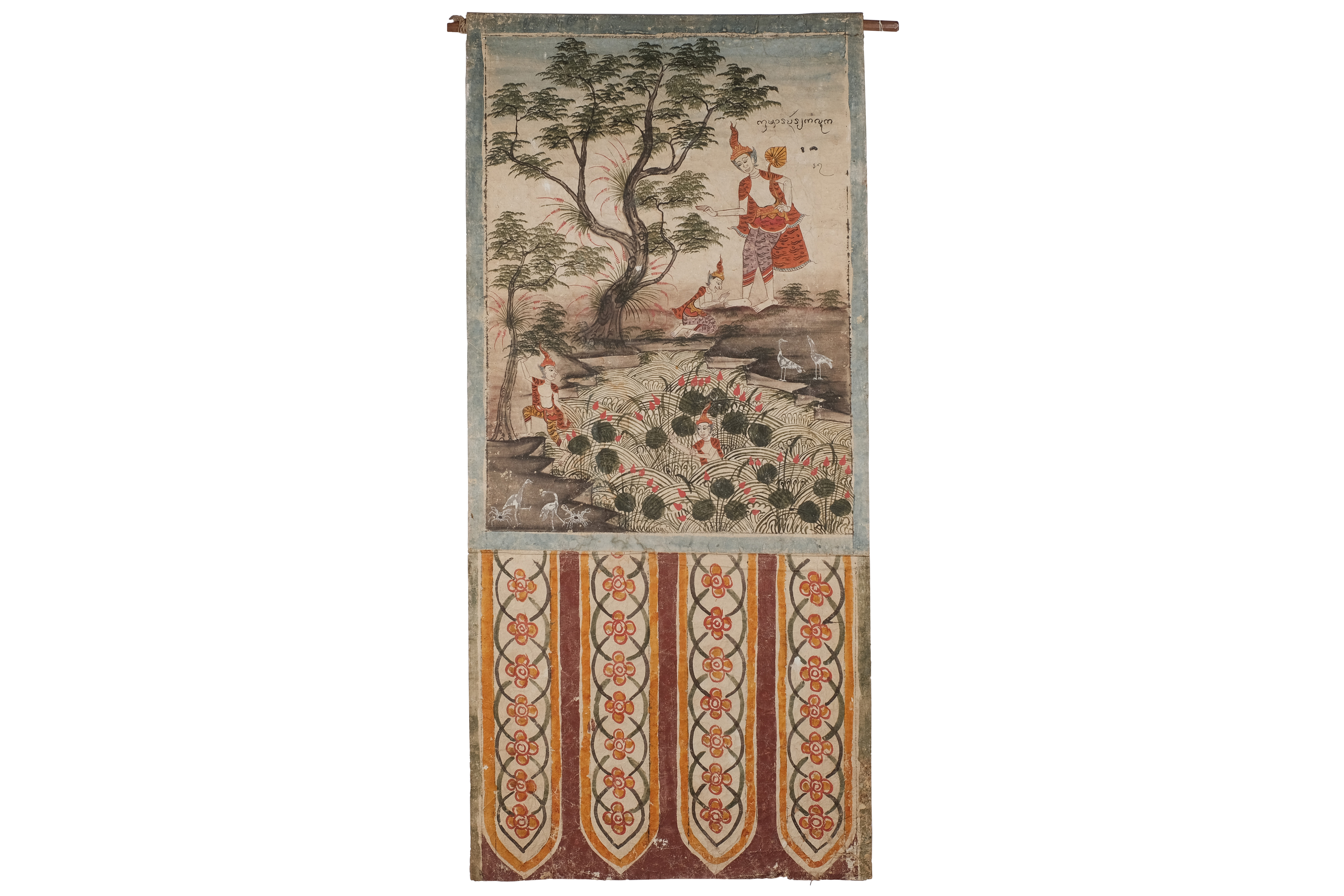ลักษณะทางกายภาพ : ลักษณะเป็นกระดาษสี่เหลี่ยมผืนผ้า วาดด้วยสีฝุ่น ขนาดความกว้าง 65 เซนติเมตร ยาว 142 เซนติเมตร