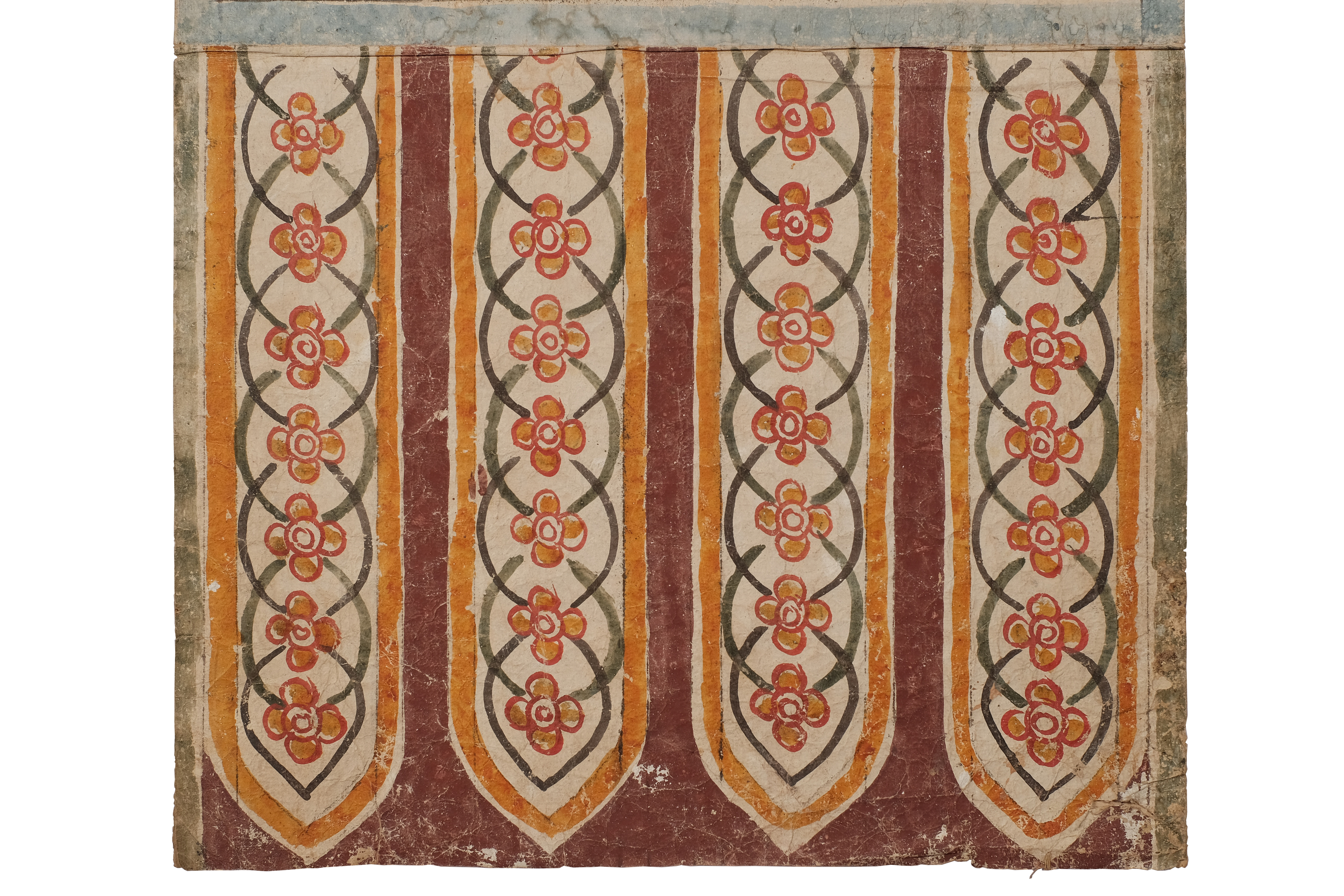 เชิงภาพพระบฏปรากฏลวดลายพรรณพฤกษา 4 ช่อง สีที่ใช้คือ เขียวแก่ เหลือง น้ำตาลแดง แดง ขนาดความกว้าง 65 เซนติเมตร ยาว 142 เซนติเมตร
