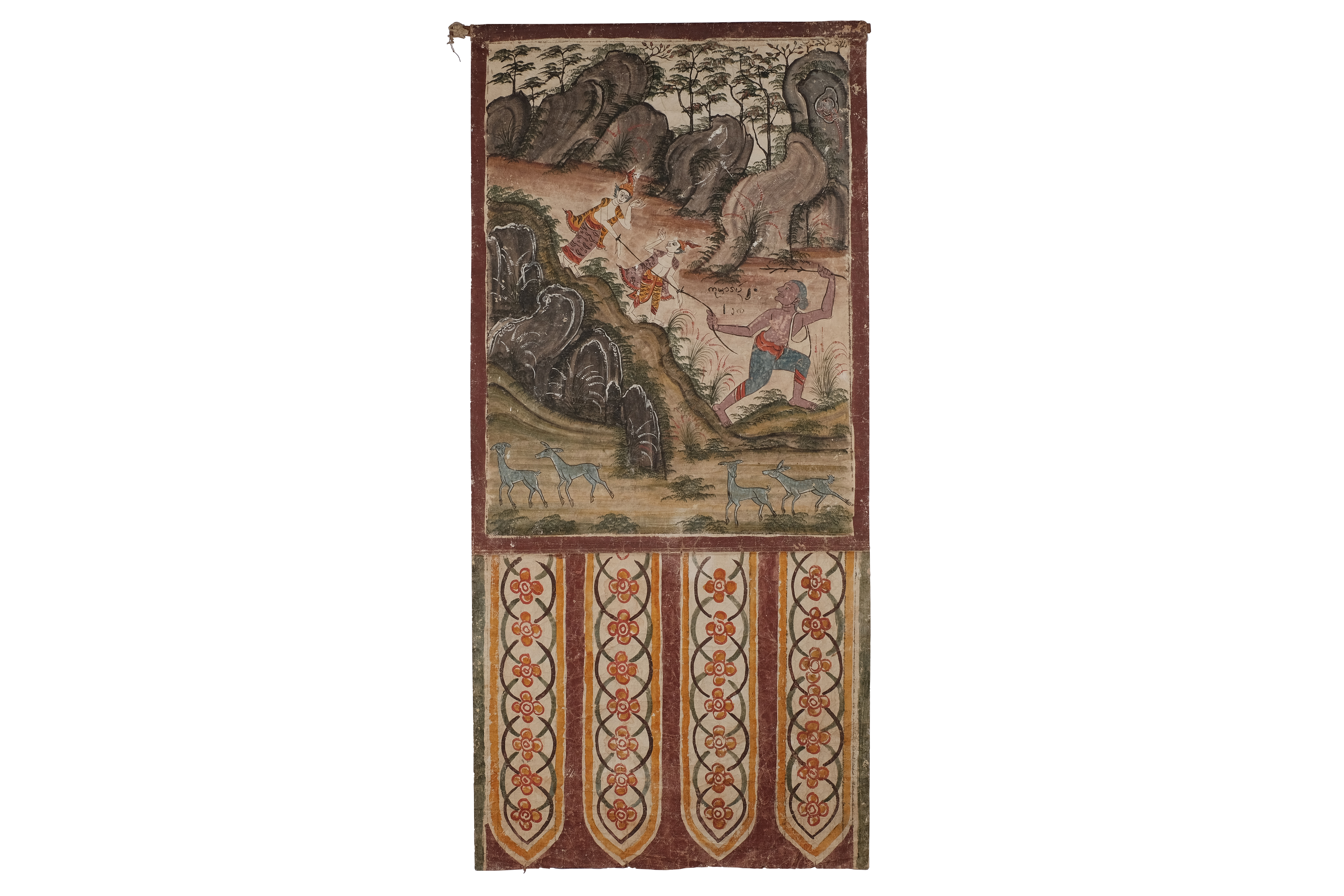 ลักษณะทางกายภาพ : ลักษณะเป็นกระดาษสี่เหลี่ยมผืนผ้า วาดด้วยสีฝุ่น ขนาดความกว้าง 66.5 เซนติเมตร ยาว 140 เซนติเมตร