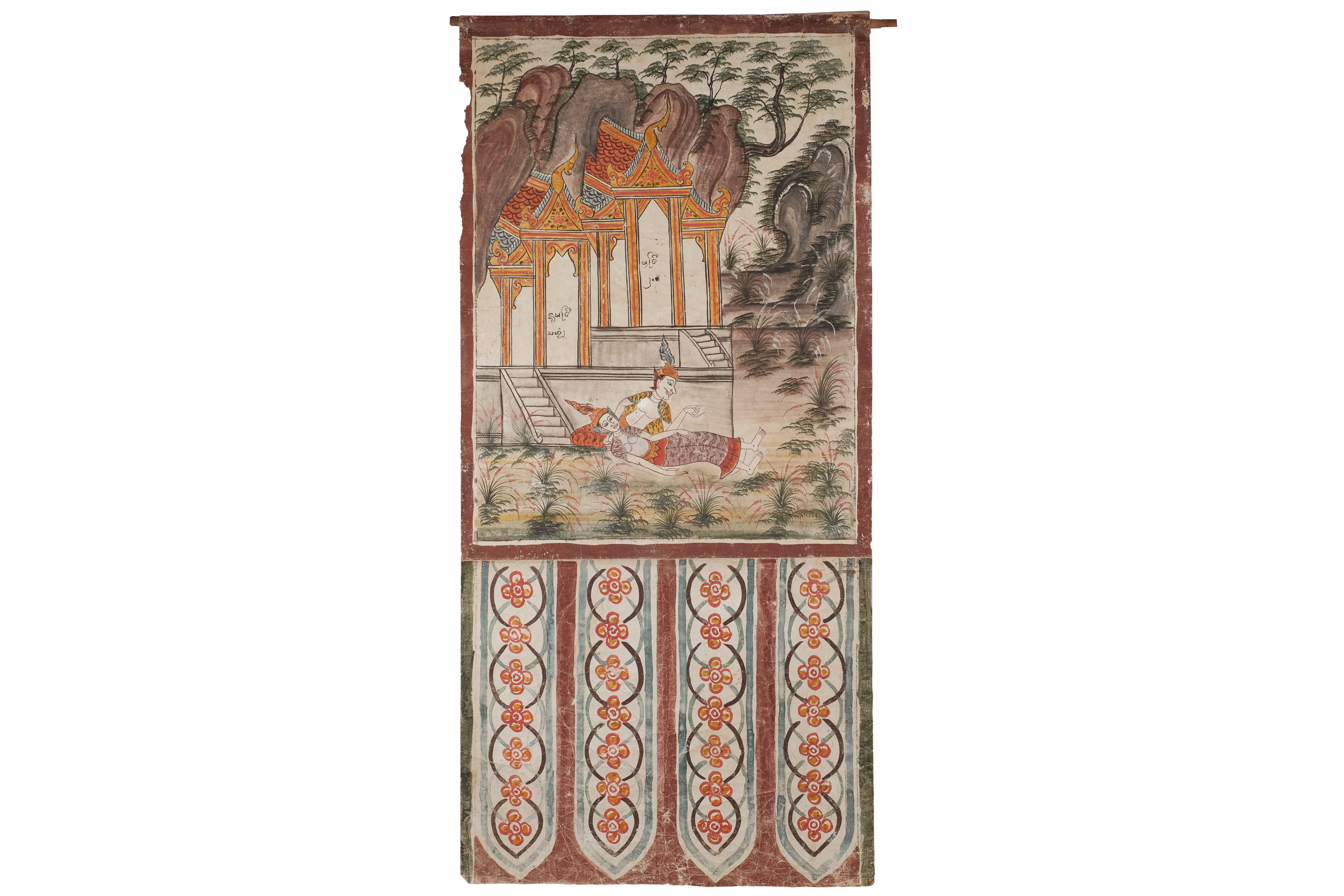 ลักษณะทางกายภาพ : ลักษณะเป็นกระดาษสี่เหลี่ยมผืนผ้า วาดด้วยสีฝุ่น ขนาดความกว้าง 66.5 เซนติเมตร ยาว 136 เซนติเมตร