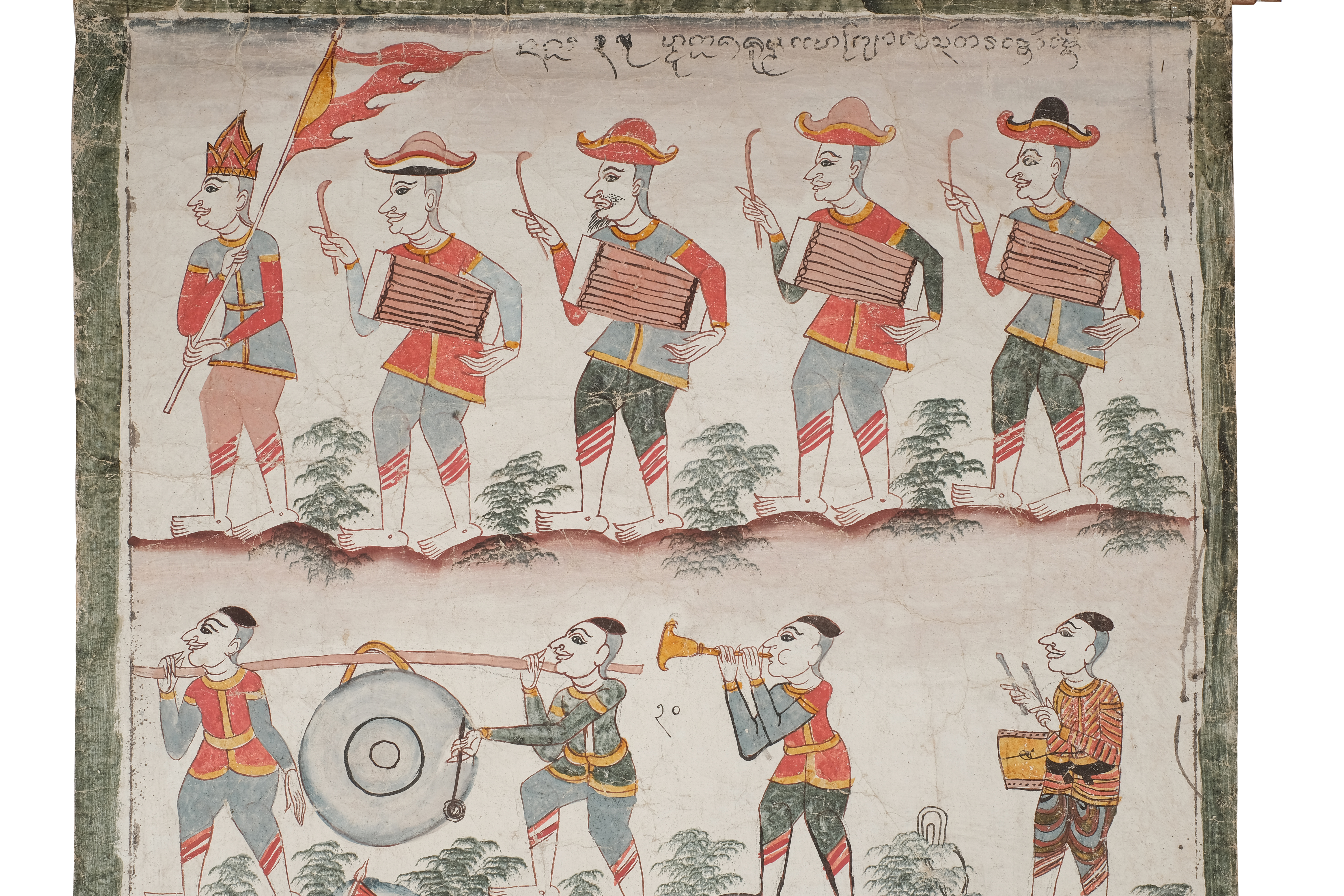 ลักษณะทางกายภาพ : ลักษณะเป็นกระดาษสี่เหลี่ยมผืนผ้า วาดด้วยสีฝุ่น ขนาดความกว้าง 66 เซนติเมตร ยาว 148 เซนติเมตร