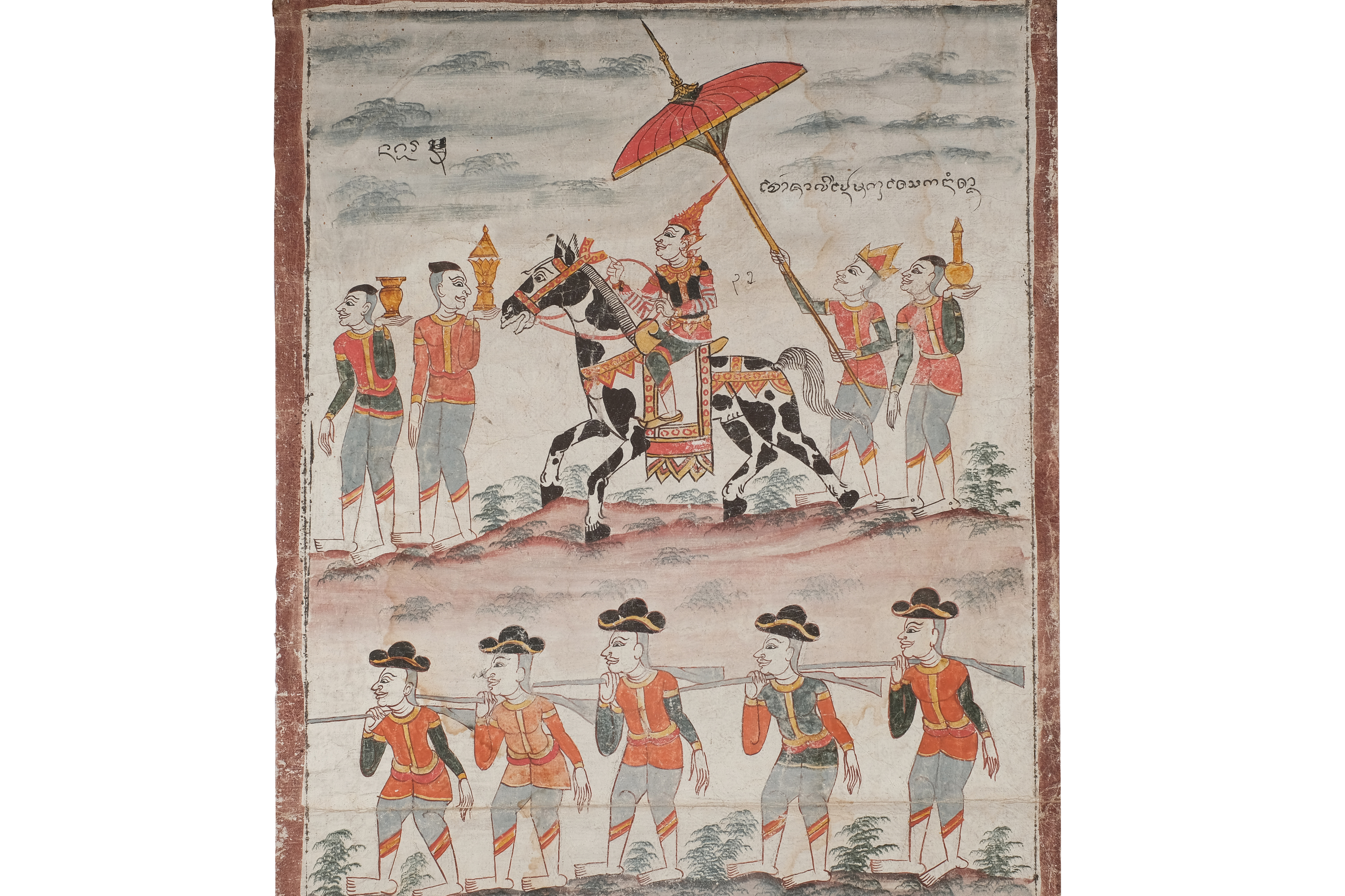 ลักษณะทางกายภาพ : ลักษณะเป็นกระดาษสี่เหลี่ยมผืนผ้า วาดด้วยสีฝุ่น ขนาดความกว้าง 66.5 เซนติเมตร ยาว 147 เซนติเมตร