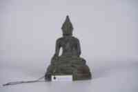 ขนาด : ความกว้างทั้งองค์ 5.5 ซม. หน้าตักกว้าง 8.8 ซม. ความสูงพร้อมฐาน 16 ซม. ความสูงเฉพาะองค์ 12 ซม.