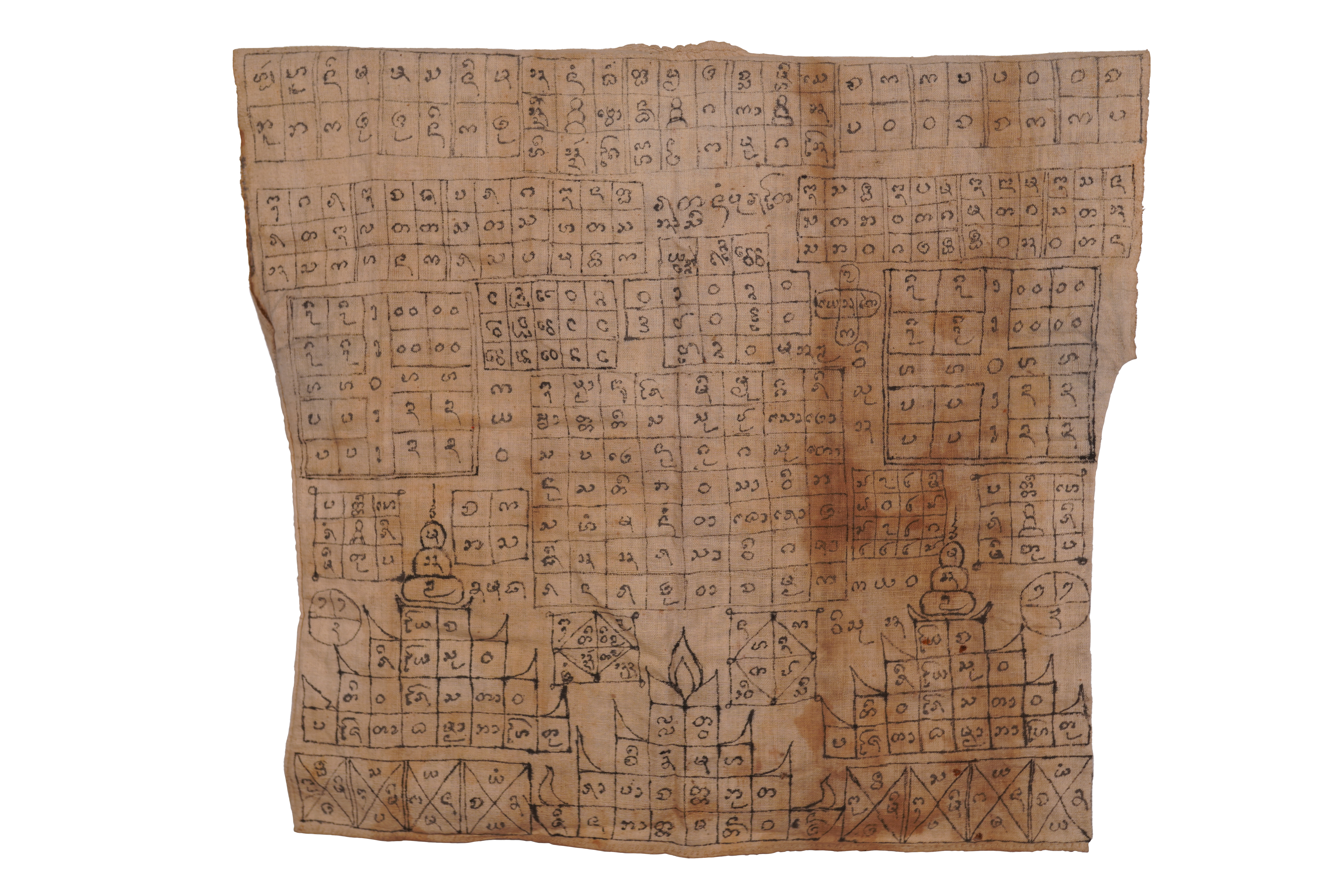 หมายเหตุ : การเขียนผ้ายันต์ในยุคต้น 2400 จะเขียนด้วยน้ำหมึกธรรมชาติ ที่ประกอบด้วย ดีสัตว์ (ดีหมี, ดีงูเหลือม, ดีวัว) ผสมด้วยตัวยาที่สร้างขึ้นมา ผสมกับขี้เขม่าจากการจุดไฟตะเกียง