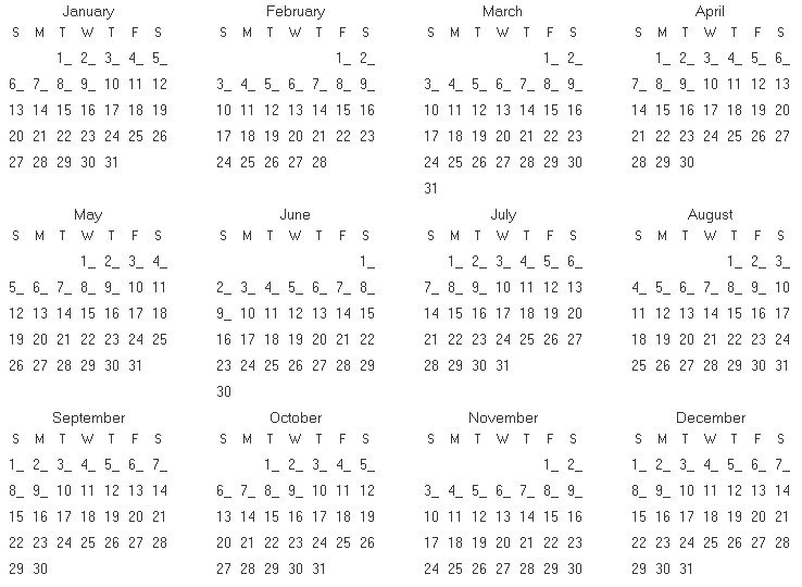 | อังคาร | 1 มกราคม | วันขึ้นปีใหม่ (New Year's Days) | วันหยุด | วันหยุด |