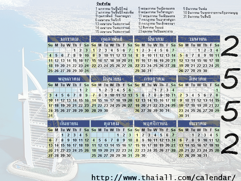 วันหยุด และวันสำคัญ (ธนาคาร+ราชการ) ปี 2552