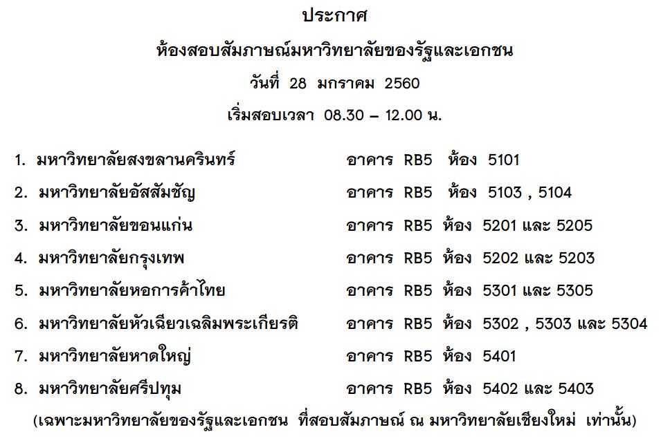 ประกาศห้องสอบสัมภาษณ์มหาวิทยาลัยของรัฐและเอกชน