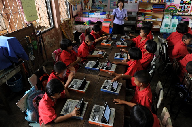 เอเอฟพี – เด็กชาวเขาตามโรงเรียนบนดอยสูงของไทยใช้ปลายนิ้วสัมผัสและเลื่อนไปบนหน้าจอคอมพิวเตอร์แท็บเล็ต ซึ่งช่วยให้พวกเขาได้รับโอกาสฝึกทักษะทั้งด้านภาษาอังกฤษ, คณิตศาสตร์ และดนตรี ในขณะที่ผู้เชี่ยวชาญด้านการศึกษายังคงตั้งคำถามว่า การ “แจก” อุปกรณ์ไฮเทคเหล่านี้จะช่วยให้ระบบการศึกษาไทยมีคุณภาพทัดเทียมนานาอารยประเทศได้จริงหรือไม่