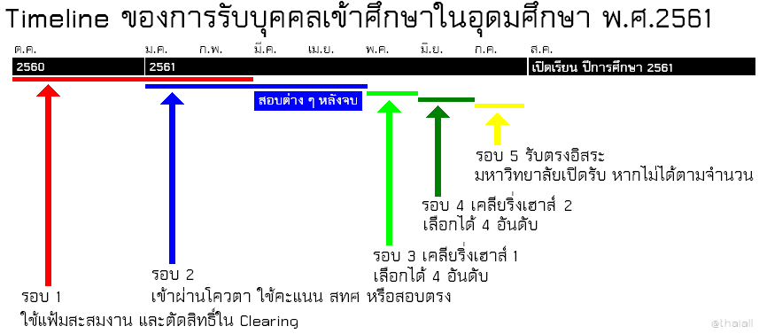 พบว่ารับนักเรียนเข้าศึกษาในระบบมีทั้งหมด 5 รอบ ดังนี้