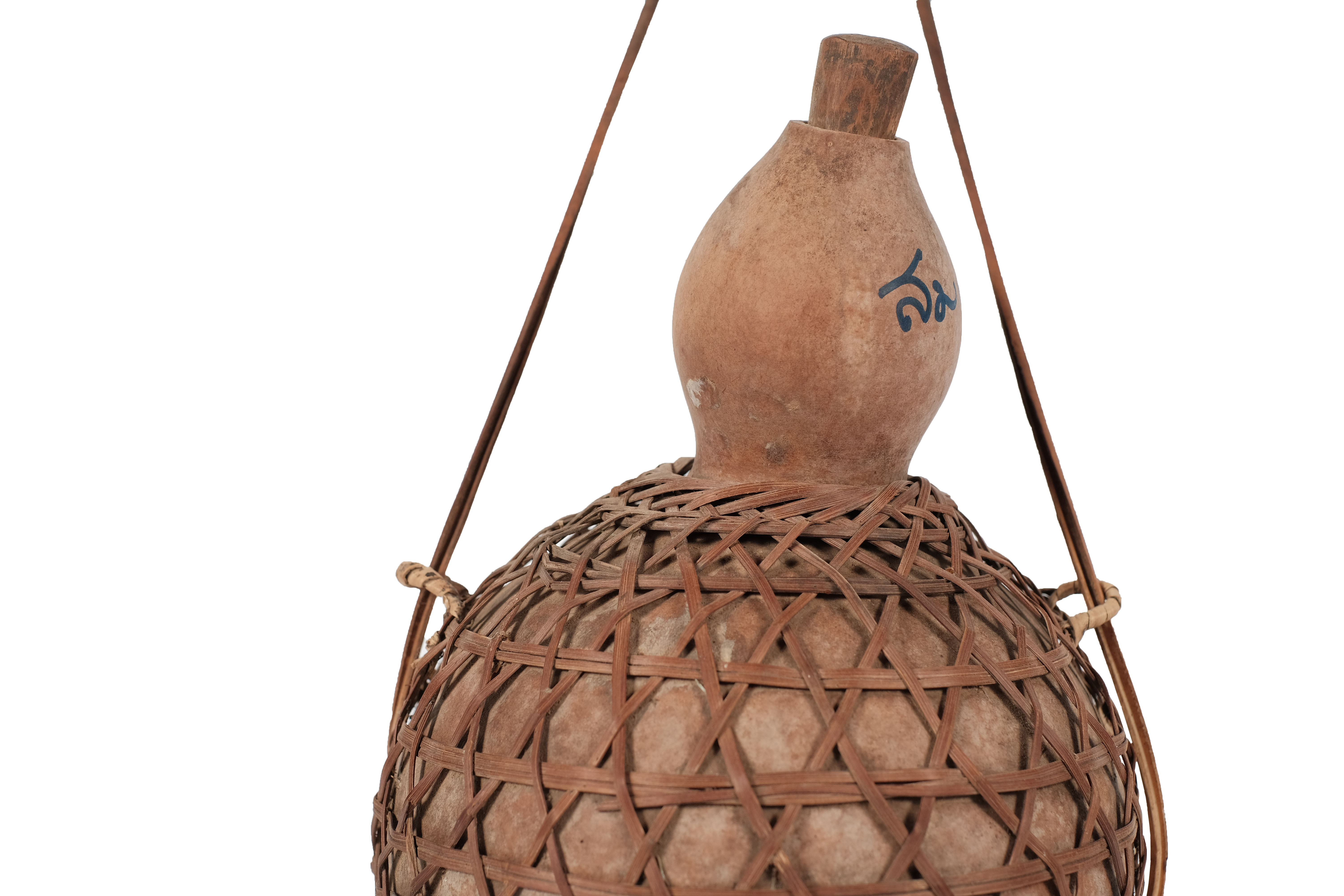 น้ำเต้าขนาดความสูง 22 เซนติเมตร ความกว้าง 10 เซนติเมตร ในอดีตใช้บรรจุน้ำดื่มสำหรับพกพาไปทำงาน ทำสวน ทำไร่ และนิยมสานตะกร้อไม้ครอบผลน้ำเต้าไว้เพื่อการพกพาที่สะดวกมากยิ่งขึ้น น้ำเต้าชิ้นนี้เดิมเป็นของ สมพร เพชร ได้มอบให้กับพิพิธภัณฑ์พื้นบ้านล้านนา วัดบ้านหลุก