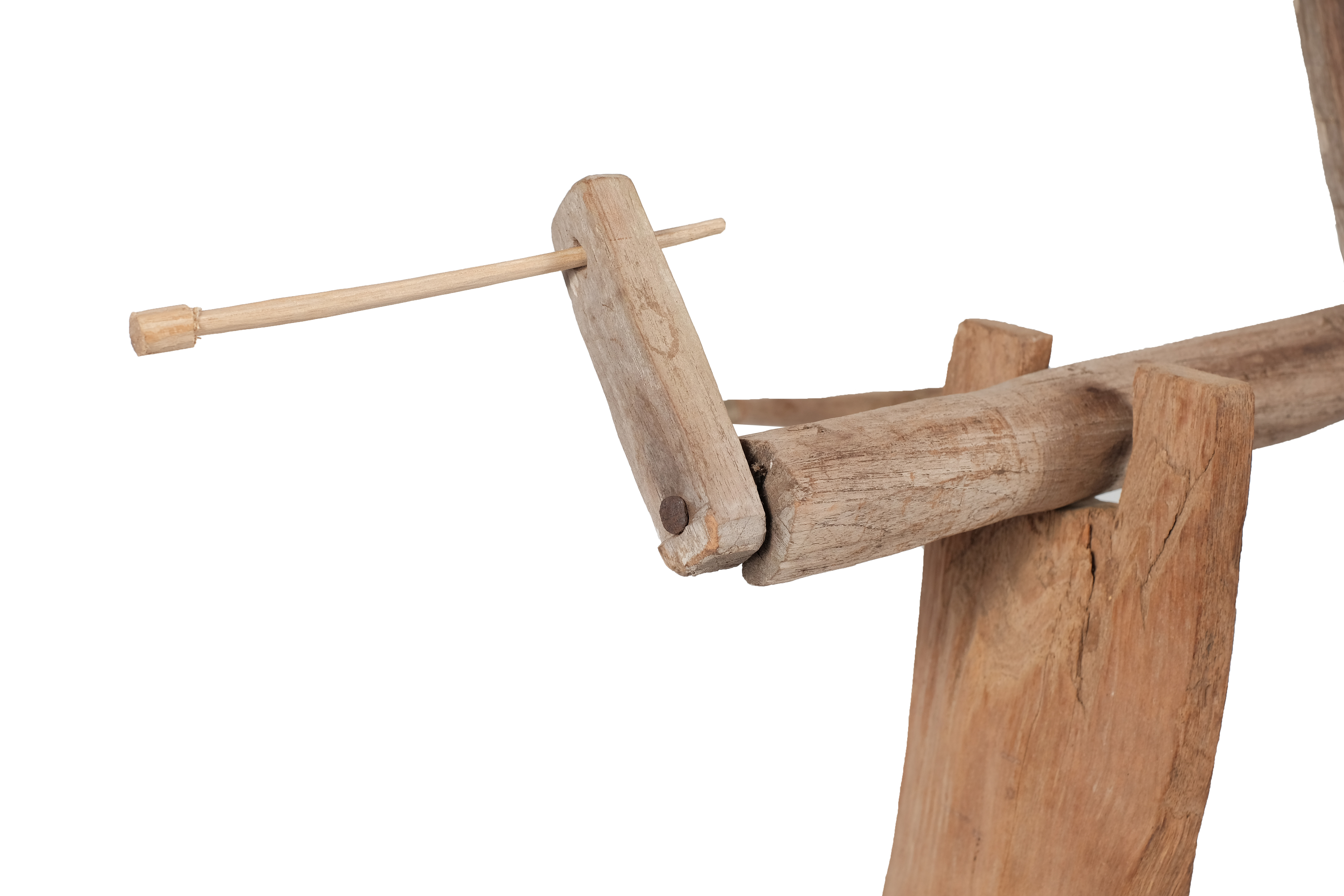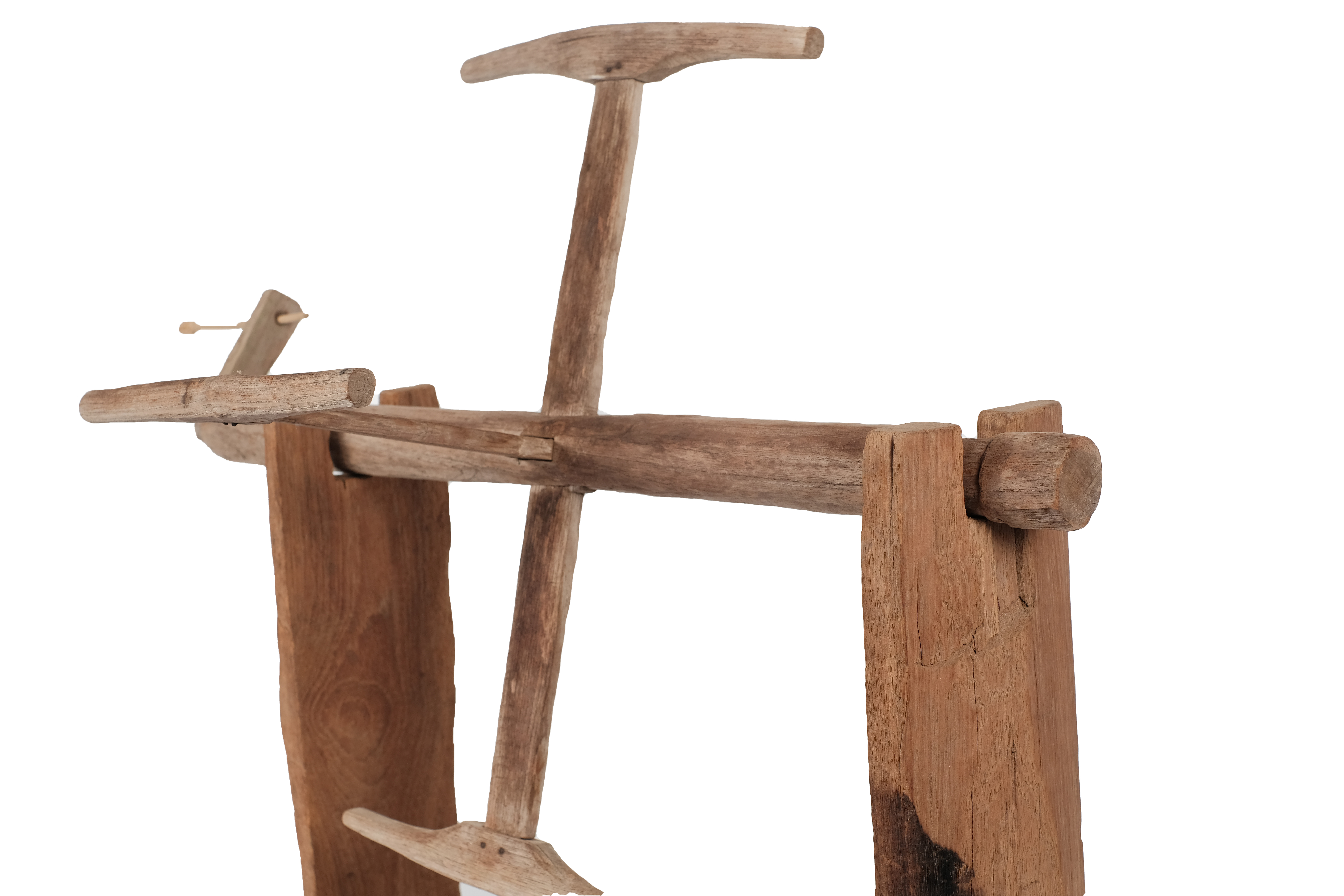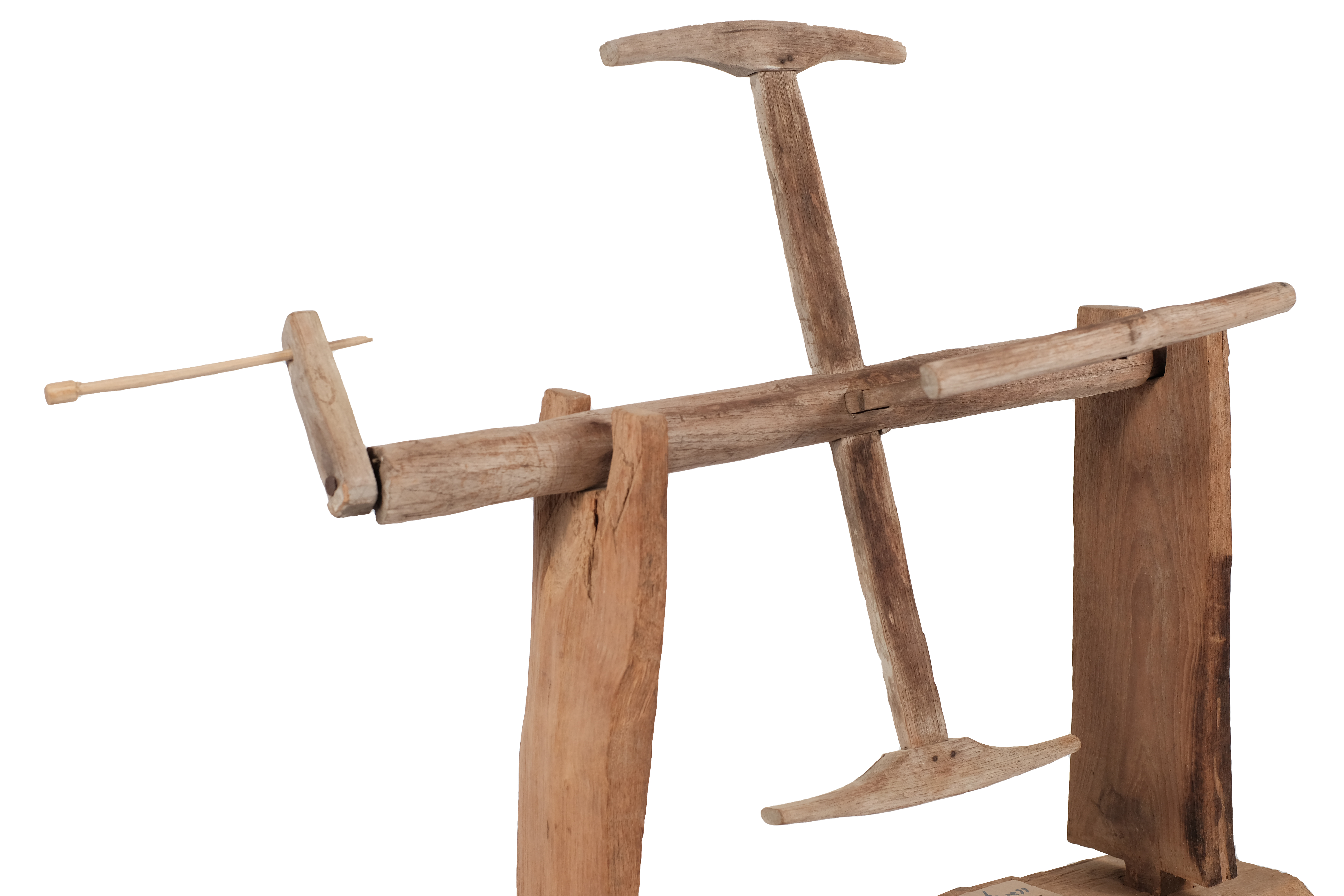 ลักษณะทางกายภาพ : ทำจากไม้สัก มีวงล้อตรงกลางไว้สำหรับหมุนเก็บด้าย