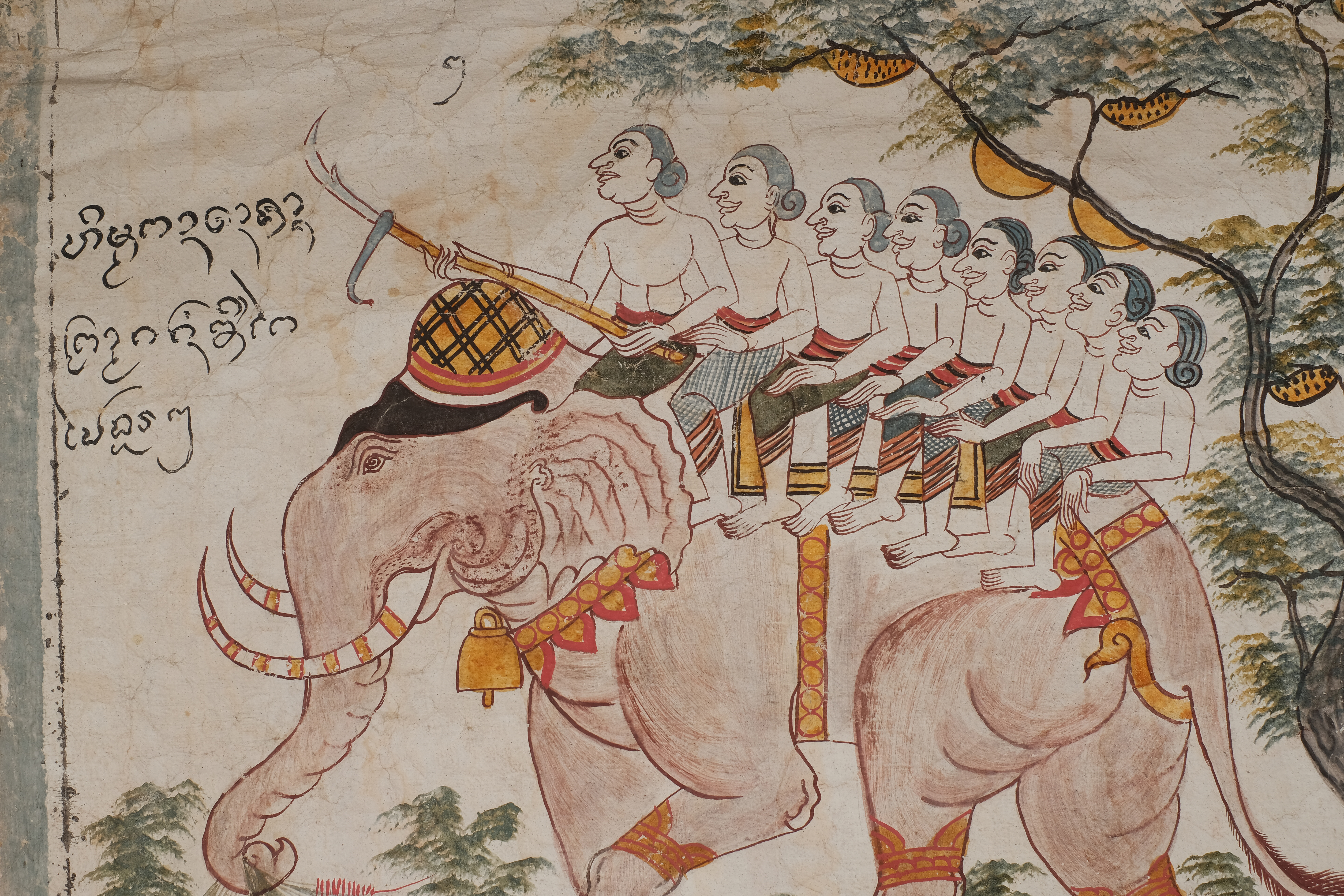 ลักษณะทางกายภาพ : ลักษณะเป็นกระดาษสี่เหลี่ยมผืนผ้า วาดด้วยสีฝุ่น ขนาดความกว้าง 66.5 เซนติเมตร ยาว 140 เซนติเมตร