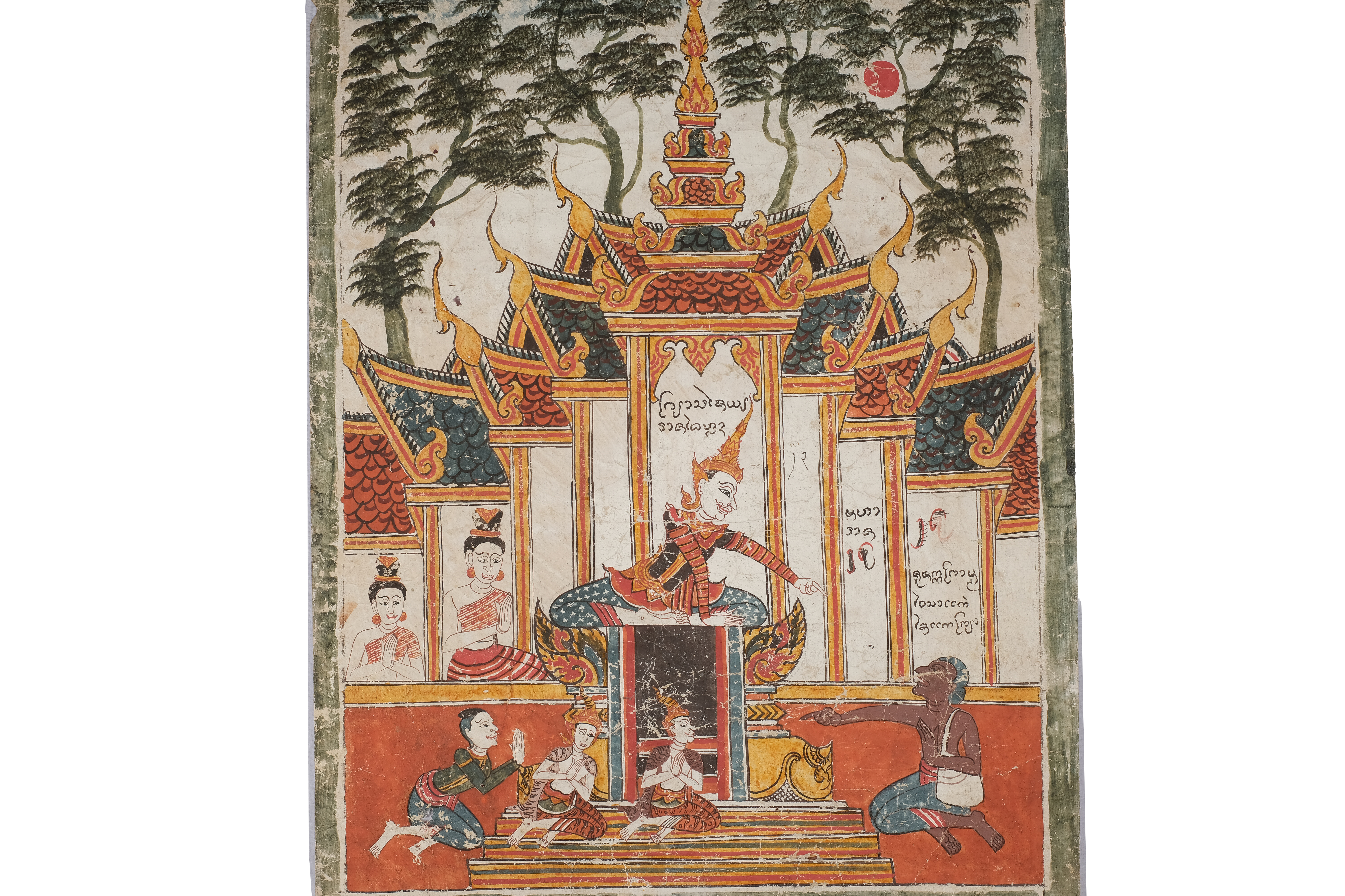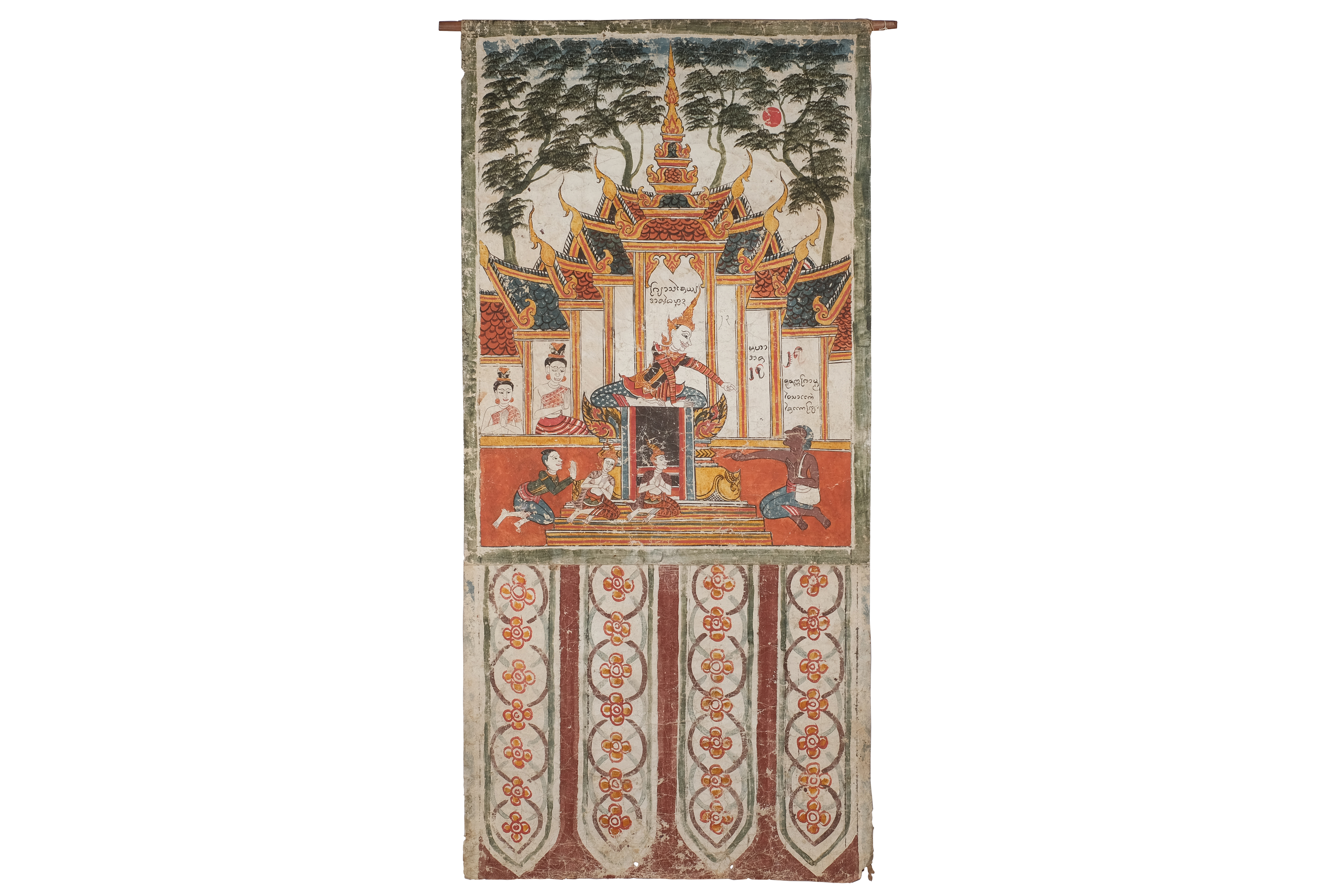 ลักษณะทางกายภาพ : ลักษณะเป็นกระดาษสี่เหลี่ยมผืนผ้า วาดด้วยสีฝุ่น ขนาดความกว้าง 66 เซนติเมตร ยาว 139.5 เซนติเมตร