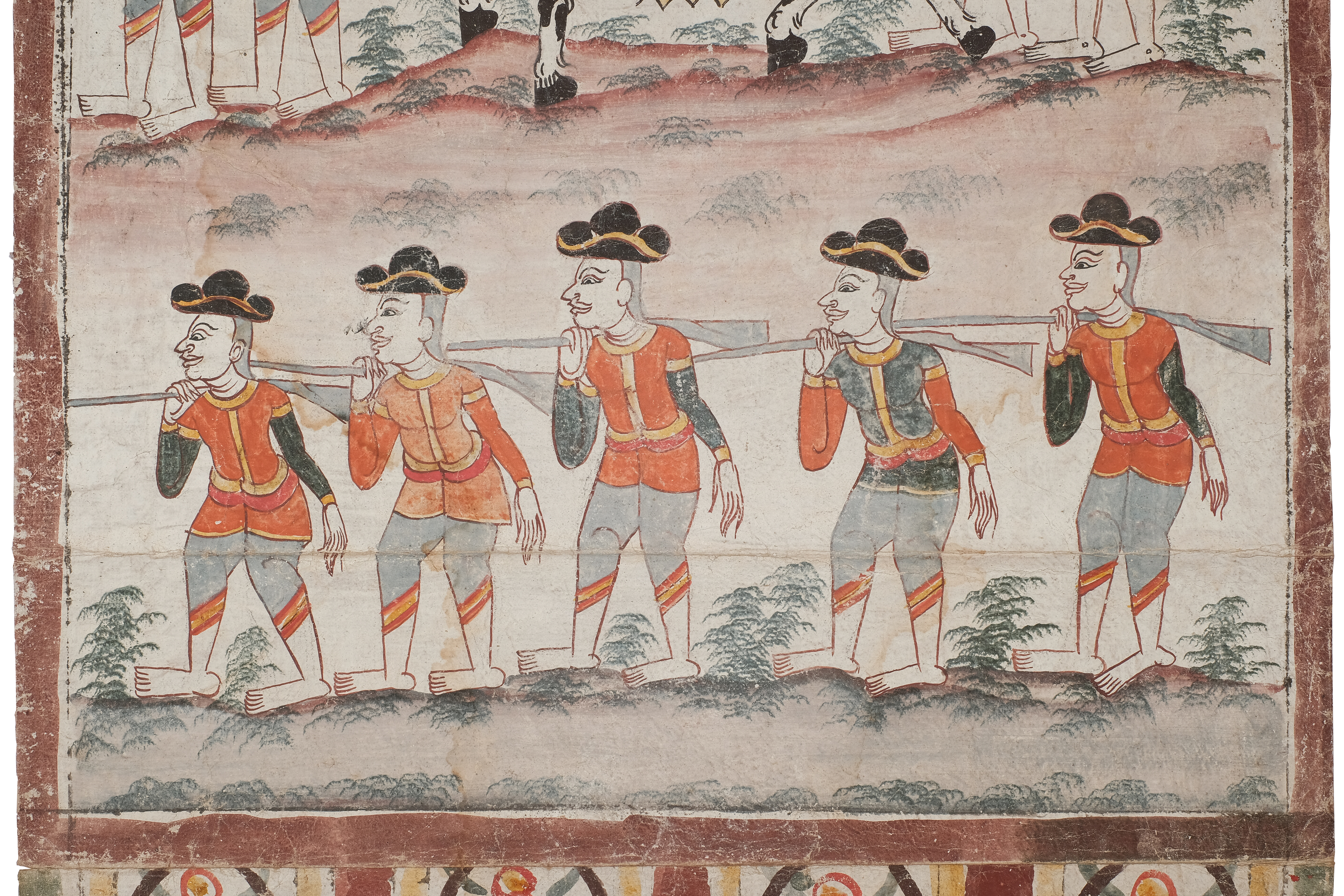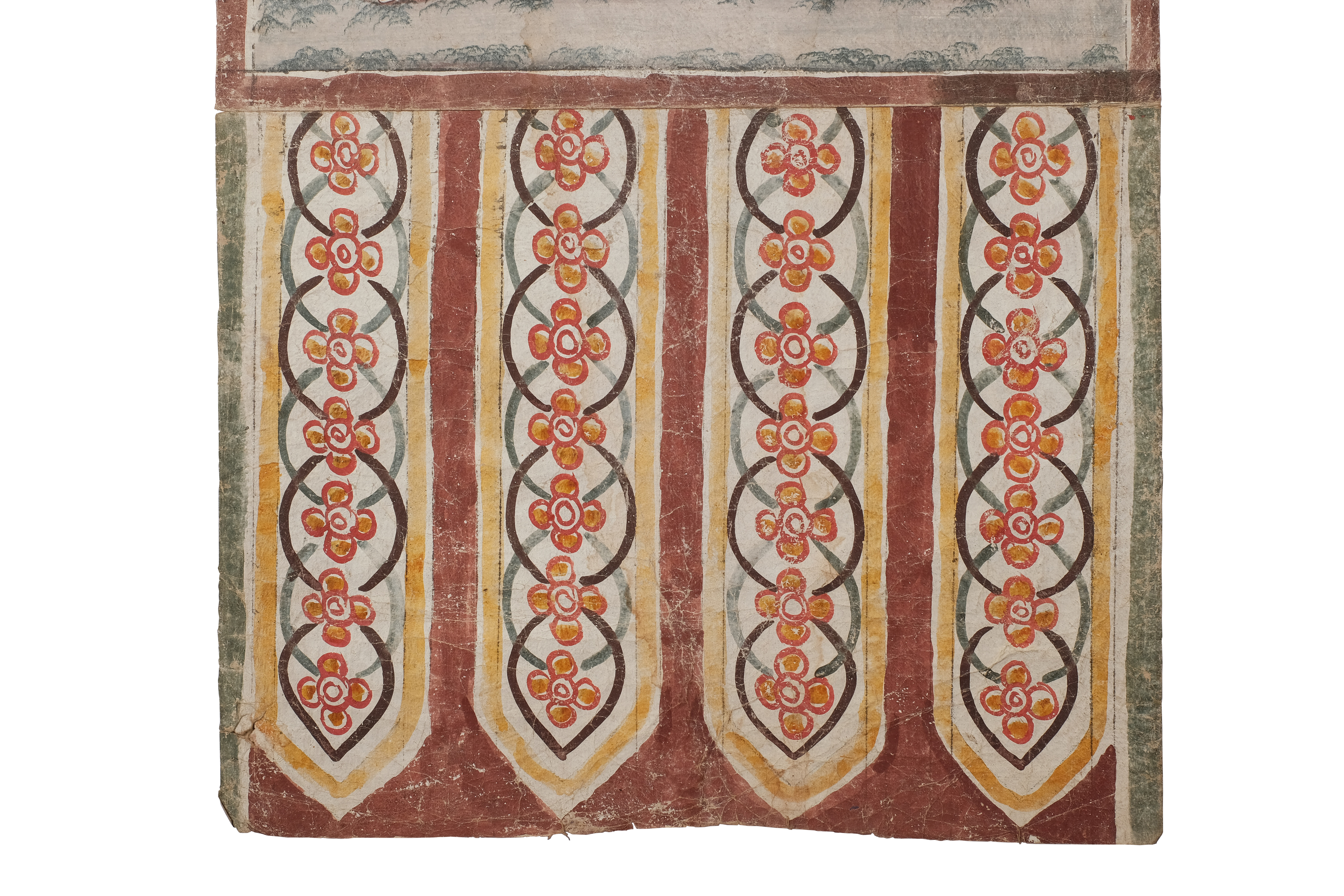 ลักษณะทางกายภาพ : ลักษณะเป็นกระดาษสี่เหลี่ยมผืนผ้า วาดด้วยสีฝุ่น ขนาดความกว้าง 66.5 เซนติเมตร ยาว 147 เซนติเมตร