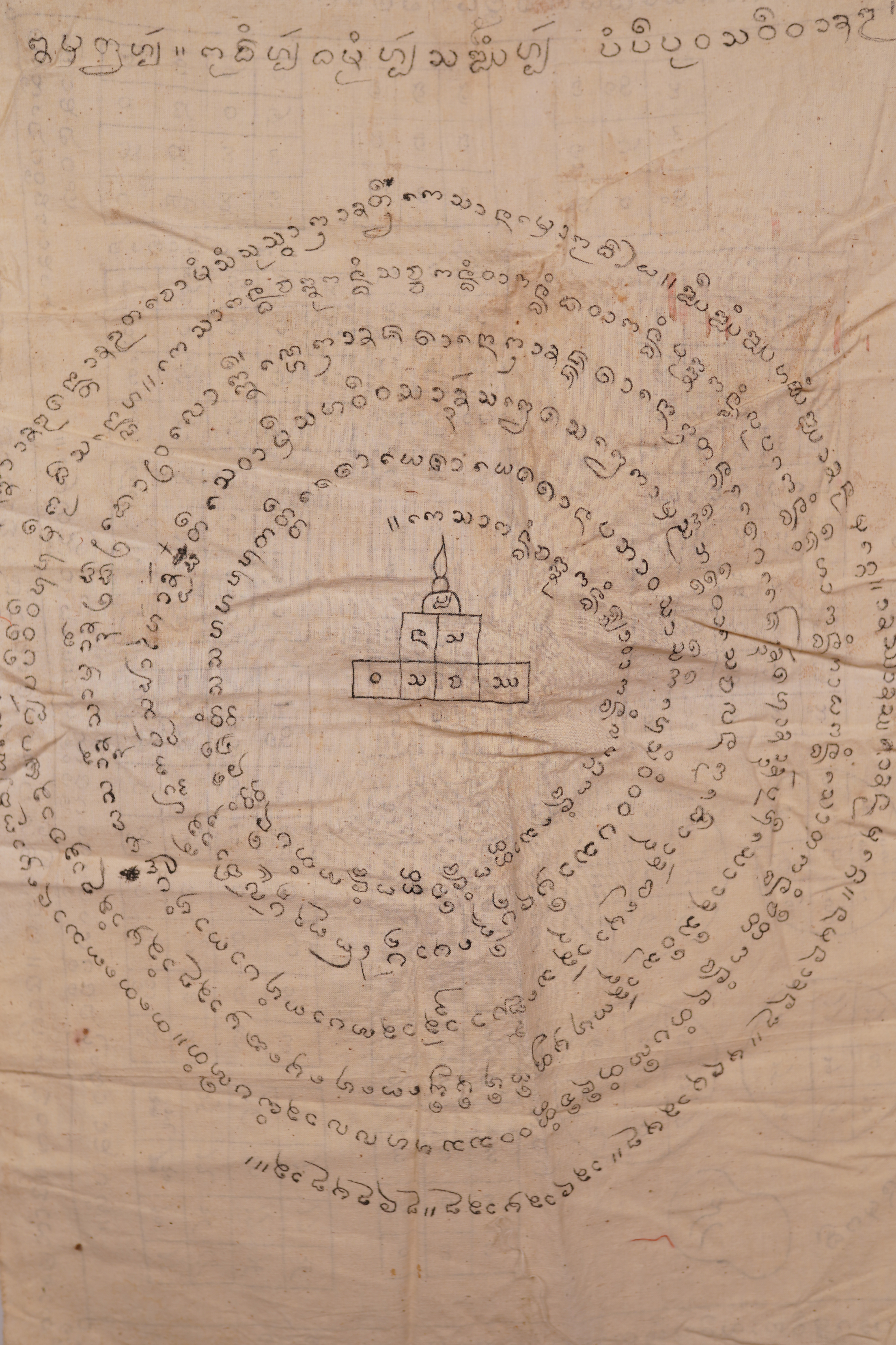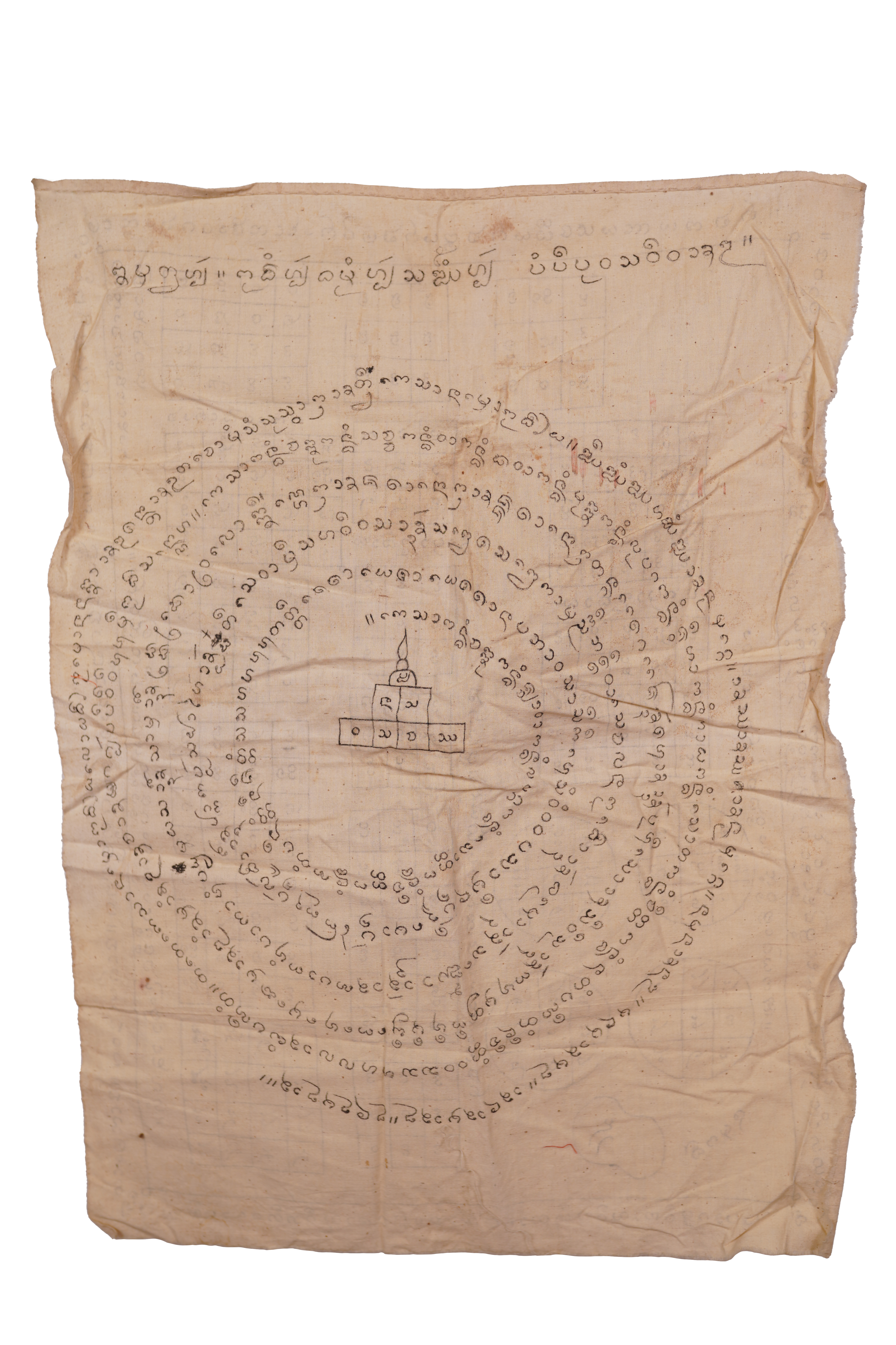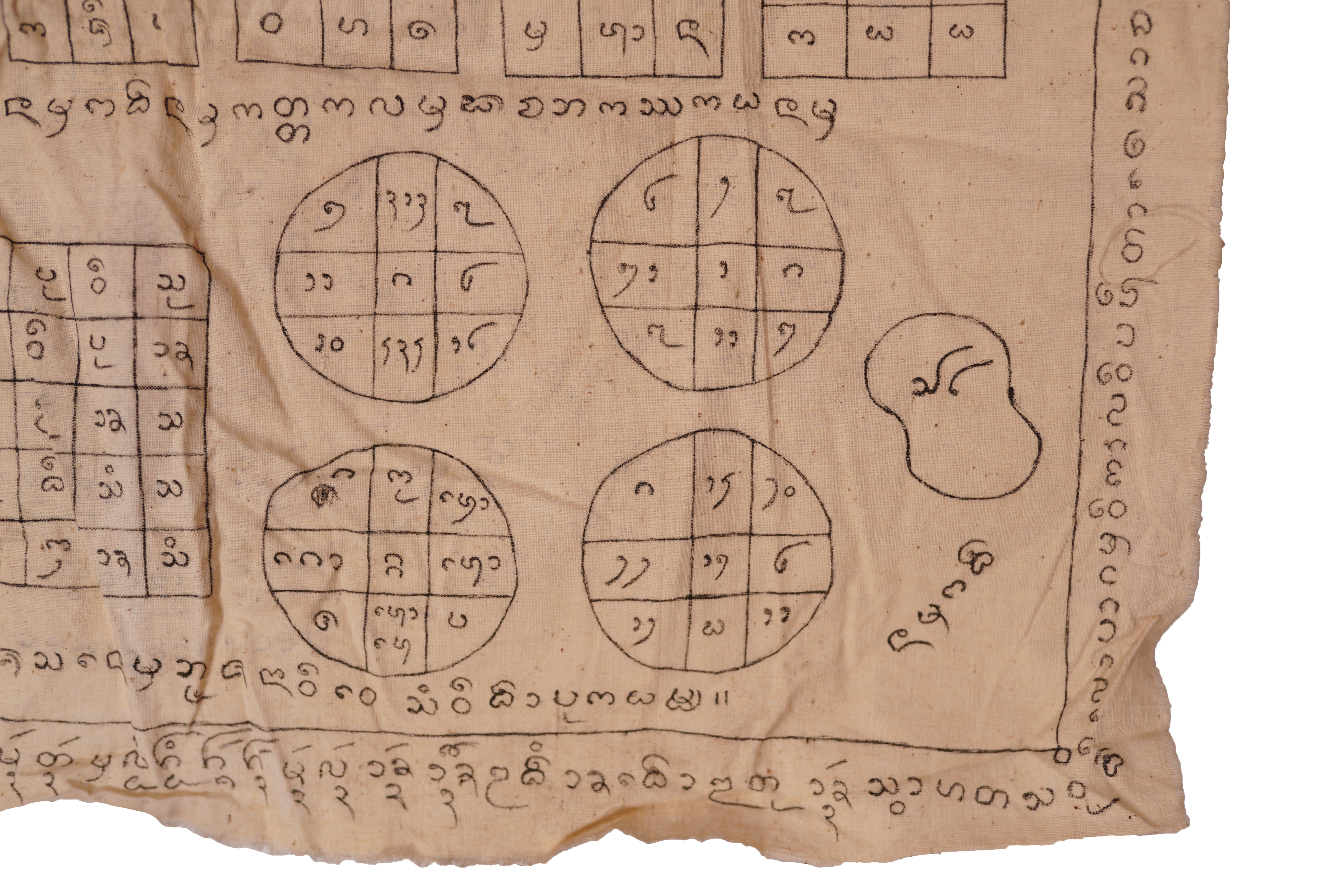 หมายเหตุ : การเขียนผ้ายันต์ในยุคต้น 2400 จะเขียนด้วยน้ำหมึกธรรมชาติ ที่ประกอบด้วย ดีสัตว์ (ดีหมี, ดีงูเหลือม, ดีวัว) ผสมด้วยตัวยาที่สร้างขึ้นมา ผสมกับขี้เขม่าจากการจุดไฟตะเกียง