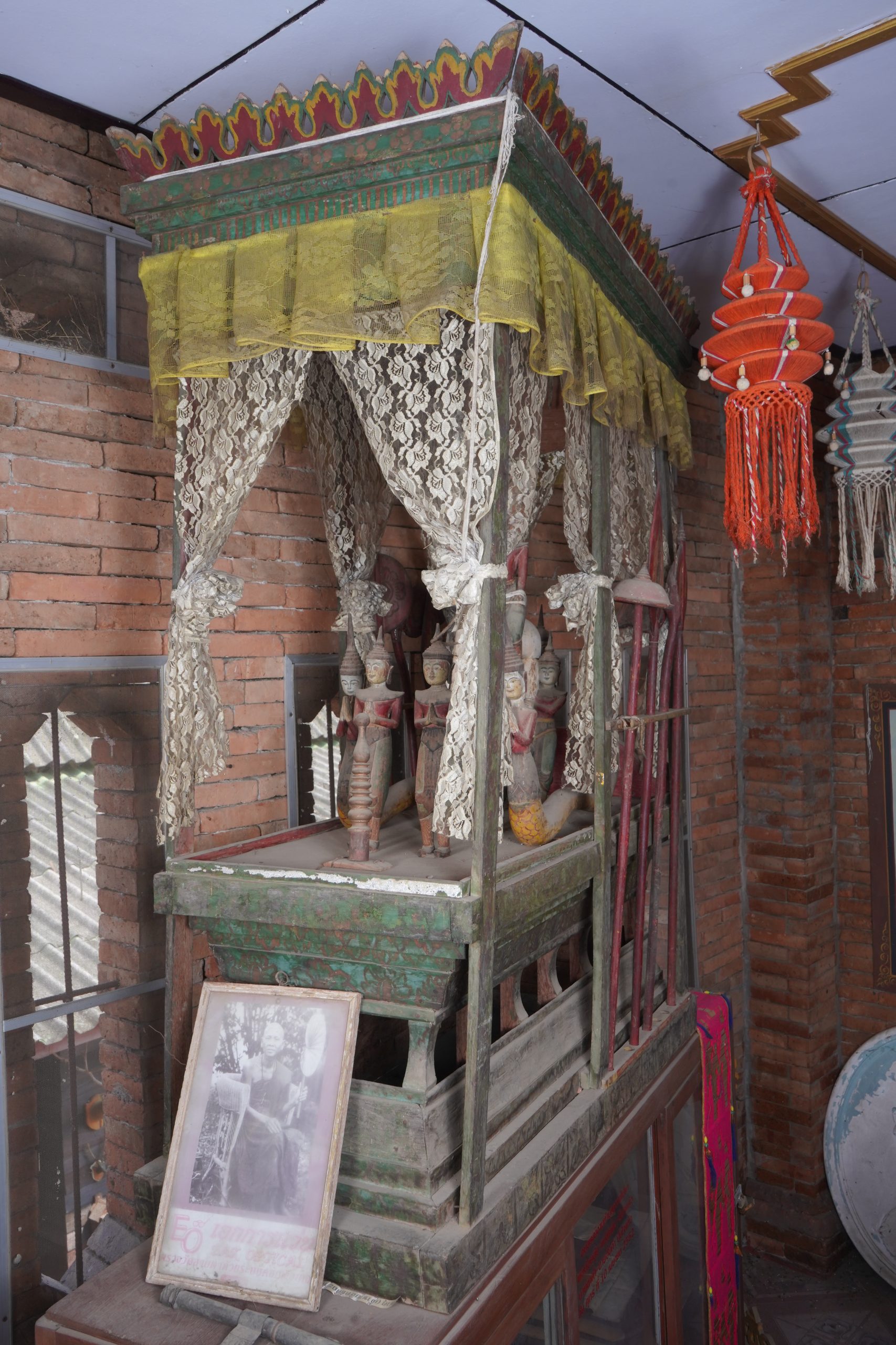 ลักษณะทางกายภาพ : เตียงไม้ทรงสี่เหลี่ยมผืนผ้า มีเสา 4 เสา พร้อมหลังคา คล้ายเตียงโบราณ