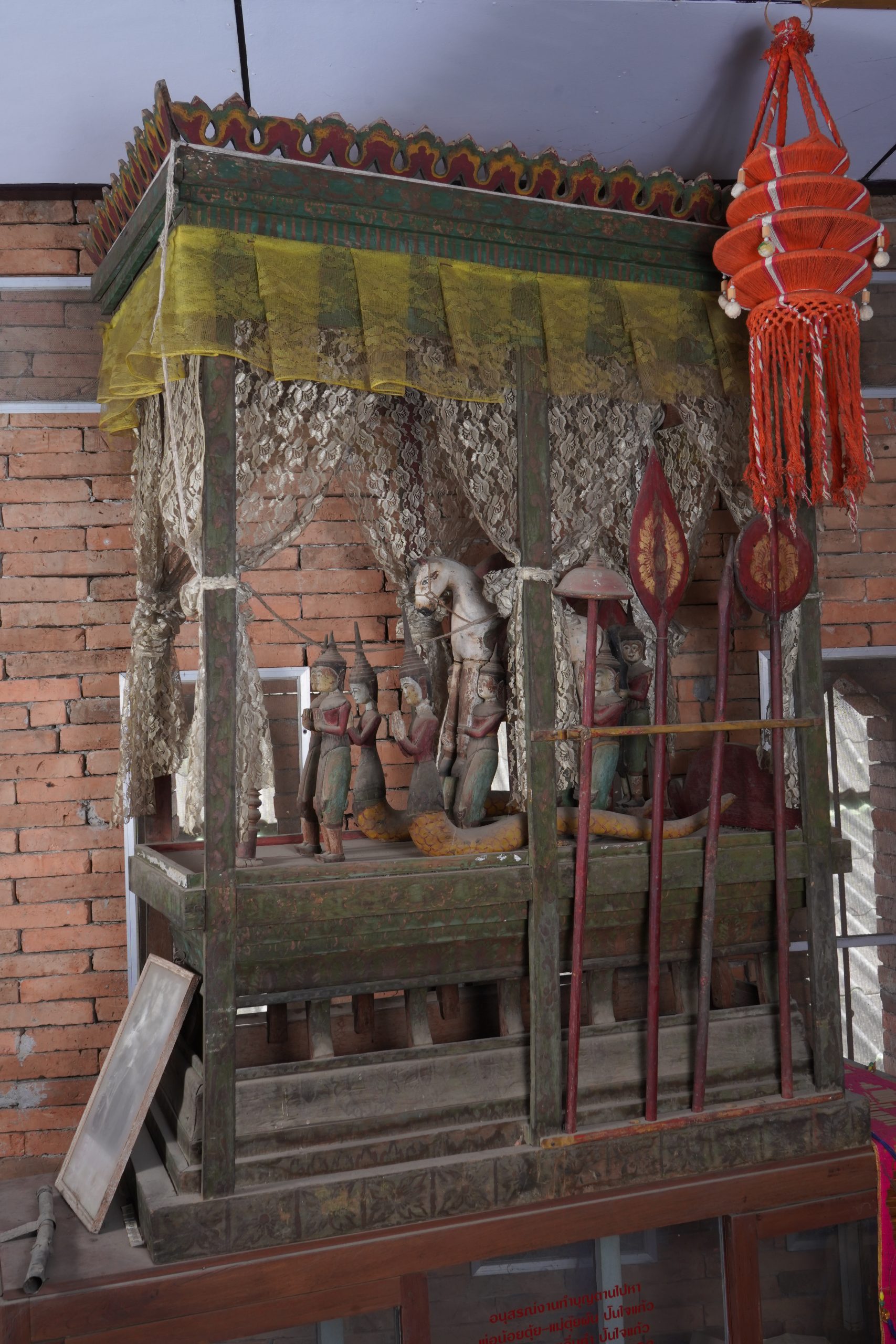 คำอธิบายวัตถุ : เตียงพระเจ้า หรือเตียงสิทธัตถะ (เตียงสิทธาตุ) ขนาดความกว้า 42 เซนติเมตร ความยาว 107 เซนติเมตร สูง 149 เซนติเมตร ใช้สำหรับประกอบพิธีในการสมโภชพระพุทธรูป เป็นหนึ่งในเครื่องสักการะสูงสุดในพระพุทธศาสนา ที่ชาวล้านนาให้ความสำคัญกับเครื่องใช้ในพิธีกรรม ทางวัดสร้างขึ้นเพื่อเป็นการระลึกถึงการออกบวชของพระพุทธเจ้า